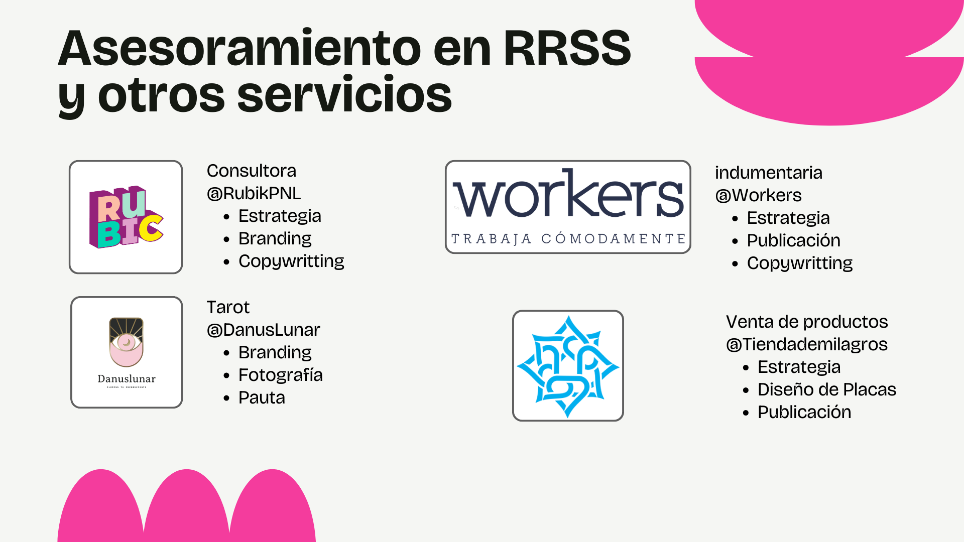 En esta sección encontrarás una selección de proyectos donde trabajamos estrategias de redes sociales, planificación editorial, producción de contenidos y lineamientos de identidad visual.